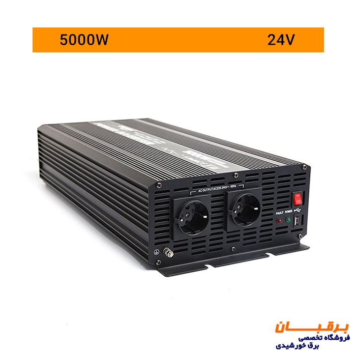 اینورتر شبه سینوسی 5000 وات 24 ولت Carspa مدل CAR5000-24v وسیله ای برای تبدیل ولتاژ 24 ولت DC به ولتاژ 220 ولت AC میباشد که استفاده از تجهیزات روزمره را که با برق شهر کار میکنند را مقدور میسازند.