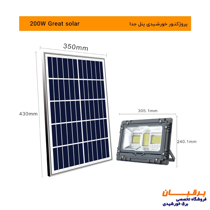 پروژکتور خورشیدی 200 وات گریت سولار Great solar